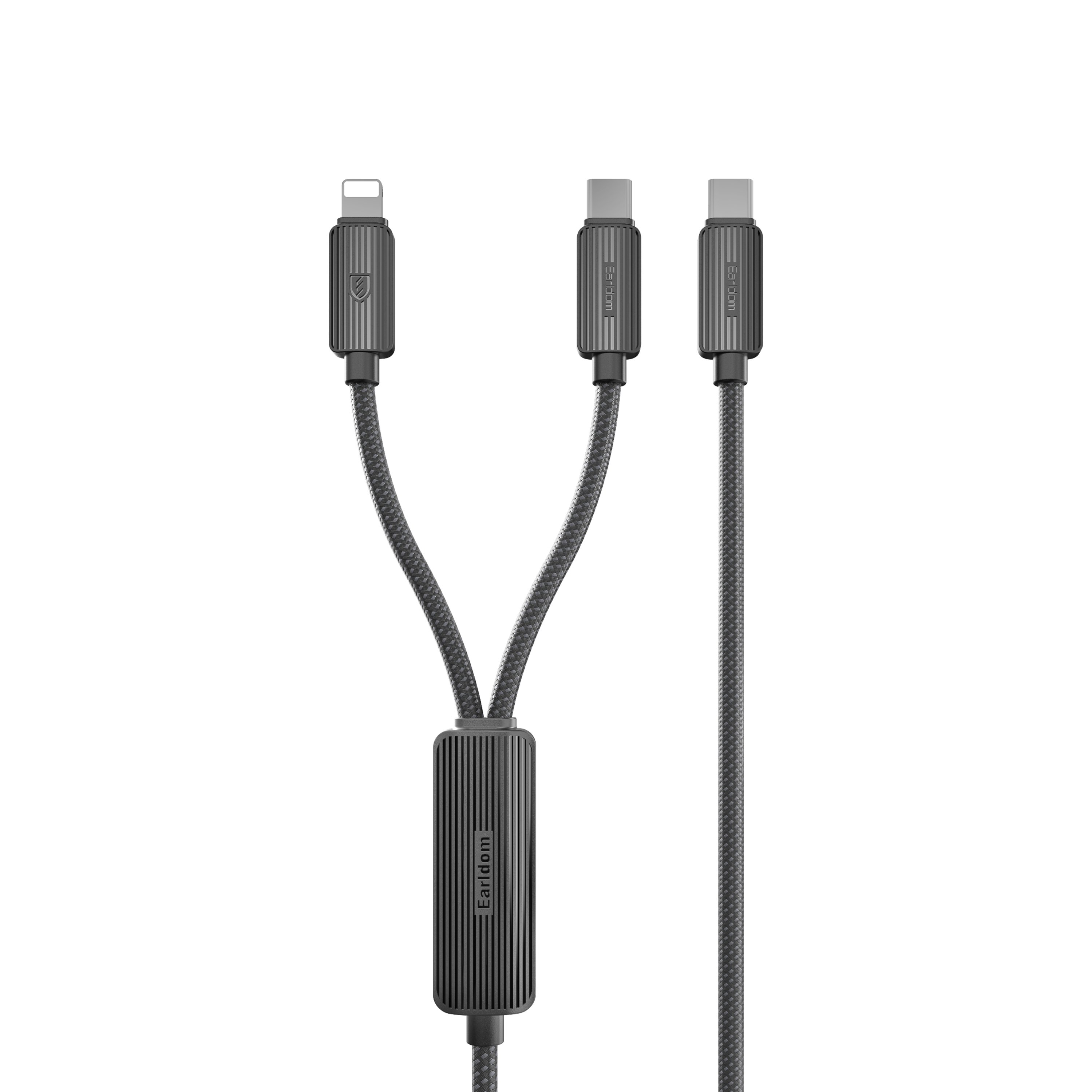 Earldom EC-IC01 1.2M Type-C to Type-C 60W ve Lightning 30W Çift Çıkışlı 2in1 PD Hızlı Şarj Kablosu - Siyah