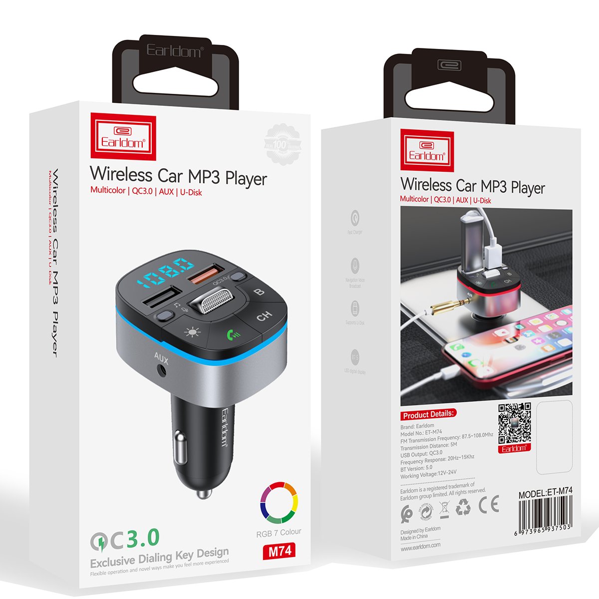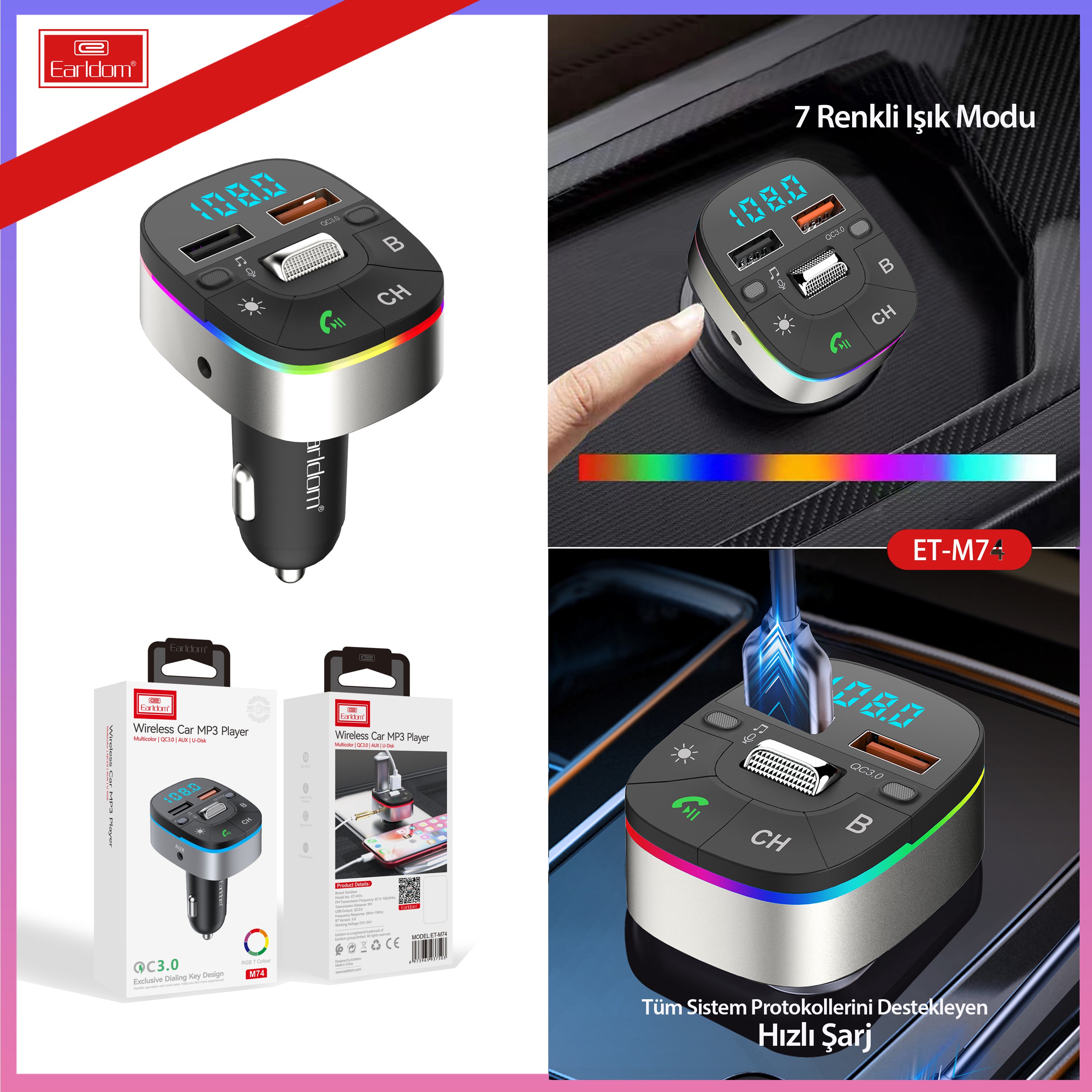 Earldom M74 Bluetooth USB 3.0 Dijital Ekranlı FM Transmitter
