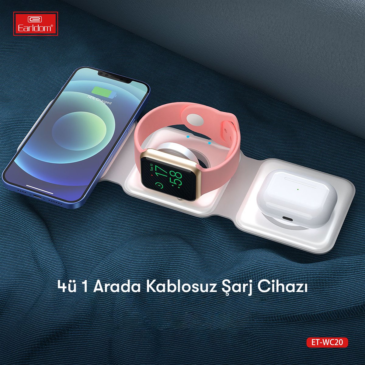 Earldom WC20 3in1 Katlanabilir Masaüstü Kablosuz Şarj Standı