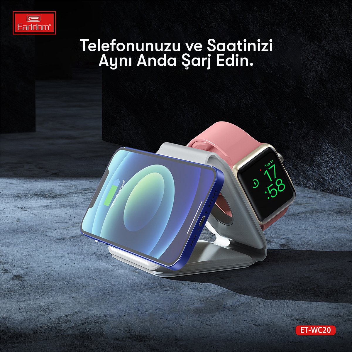 3in1 Çoklu Şarj: Aynı anda telefon, akıllı saat ve kablosuz kulaklık şarj edebilme.