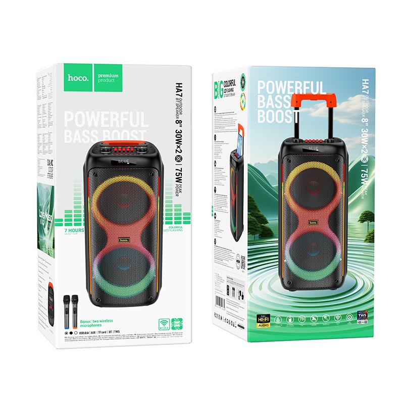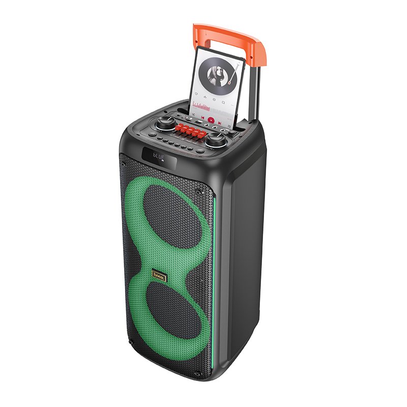 Hoco. HA7 Leader 30W Bluetooth 5.0 Destekli 2 Karaoke Mikrofonlu RGB LED Işıklı Taşınabilir Kablosuz Hoparlör - Siyah