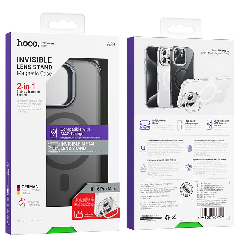 Hoco. Apple iPhone 16 Pro Invisible Magsafe Kapak - Siyah