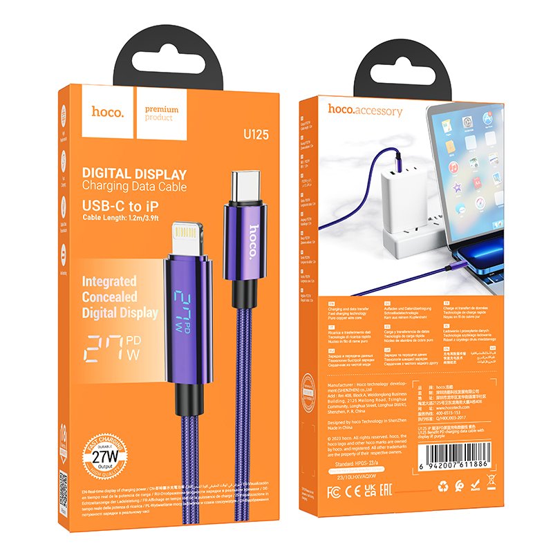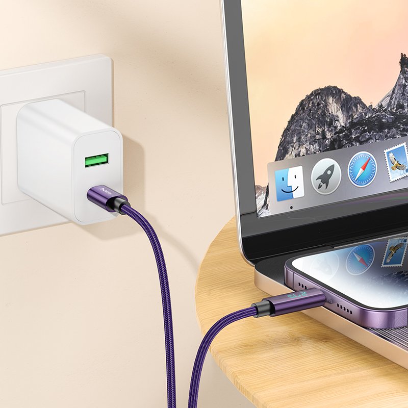 Hoco. U125 1.2M Benefit Type-C to Lightning Şarj Data Kablosu - Mor