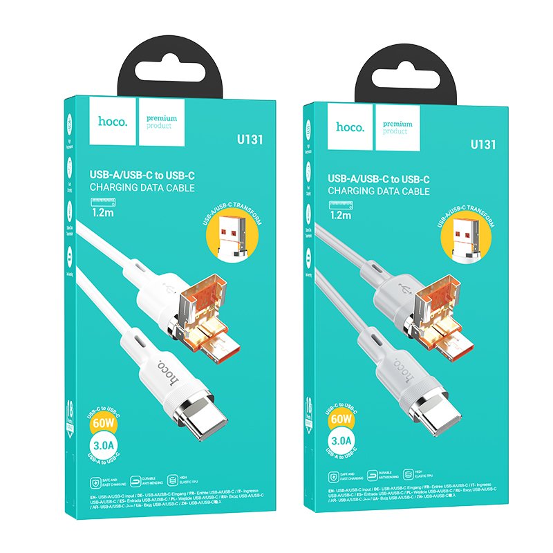 Hoco. U131 1.2M 2in1 USB ve Type-C to Type-C Şarj Data Kablosu