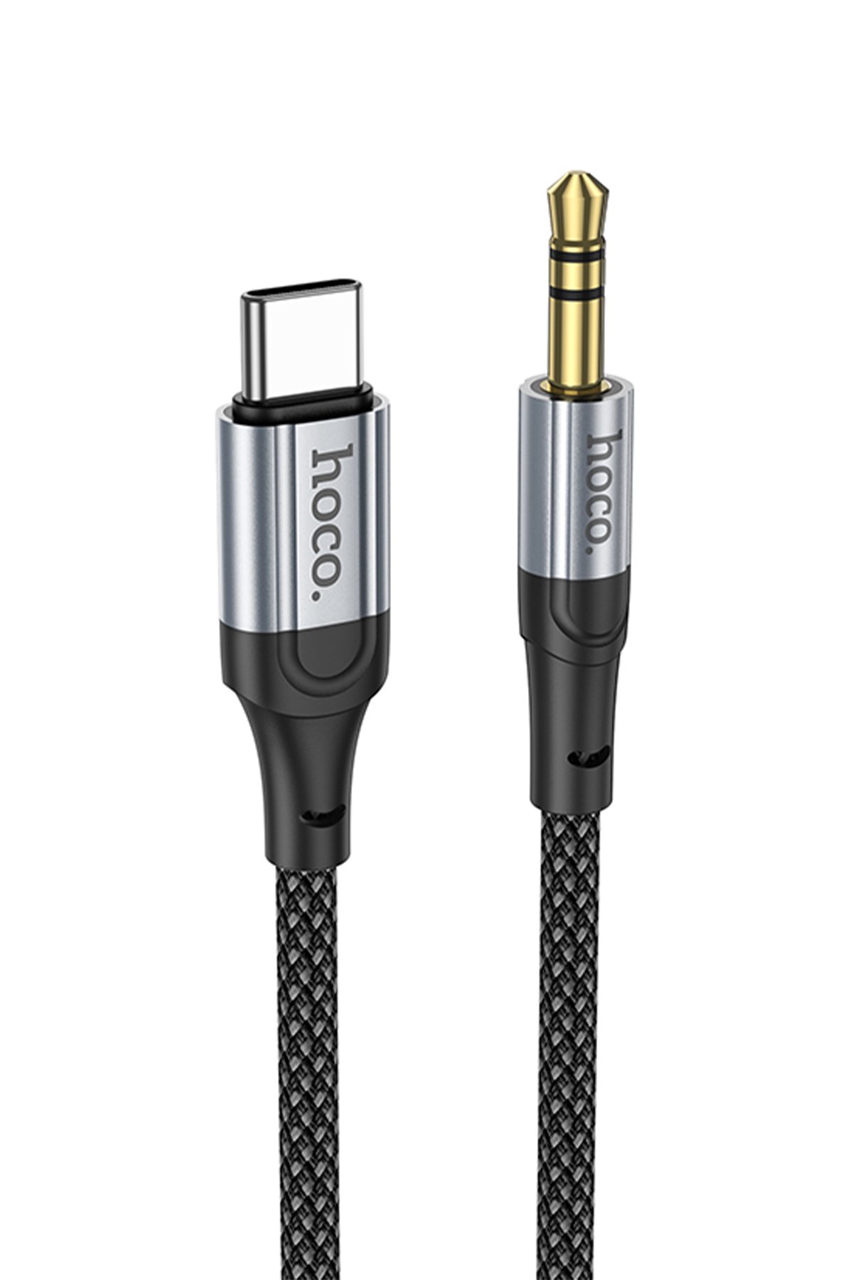 Hoco. UPA26 1M Hasırlı Type-C to Aux Kablo - Siyah