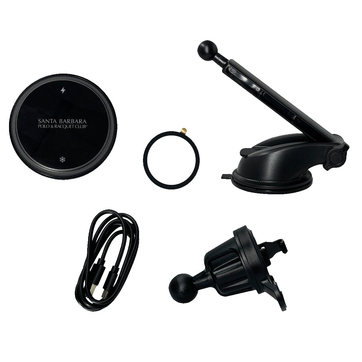 Santa Barbara Polo Racquet Club Lambert X28 2in1 Izgara Klipsli ve Vantuzlu Soğutucu Özellikli Kablosuz Şarj Magsafe Araç Tutucu - Siyah