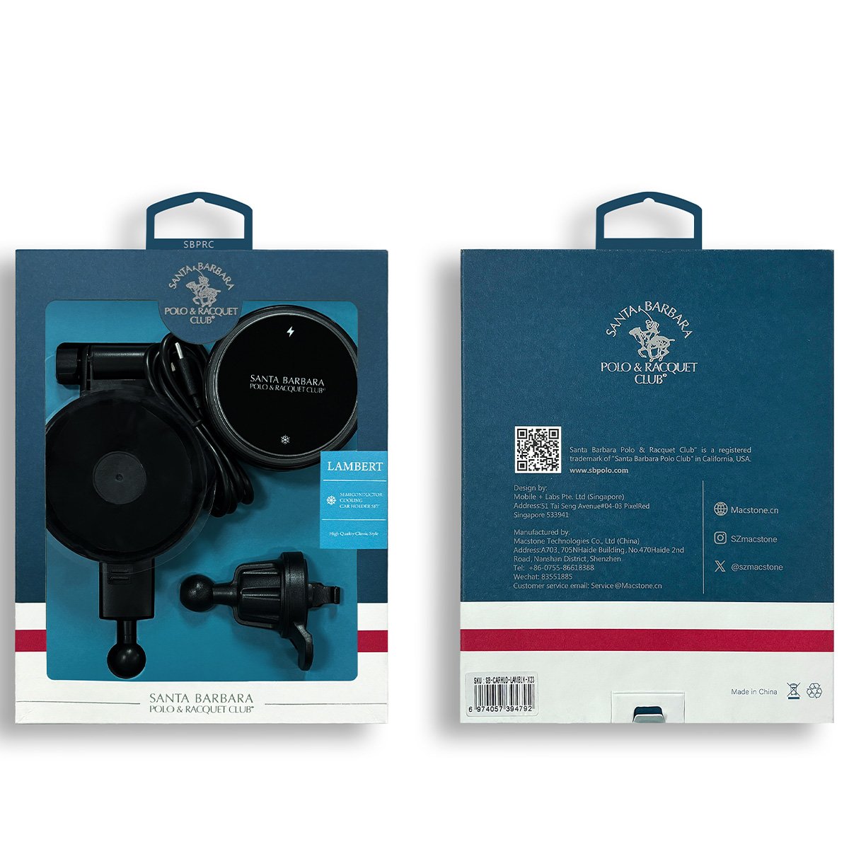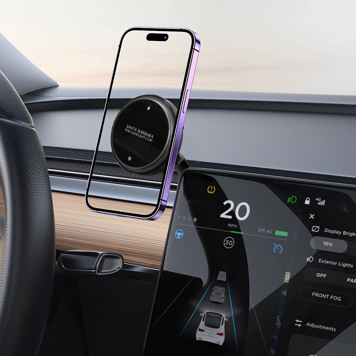 Santa Barbara Polo Racquet Club Lambert X28 2in1 Izgara Klipsli ve Vantuzlu Soğutucu Özellikli Kablosuz Şarj Magsafe Araç Tutucu