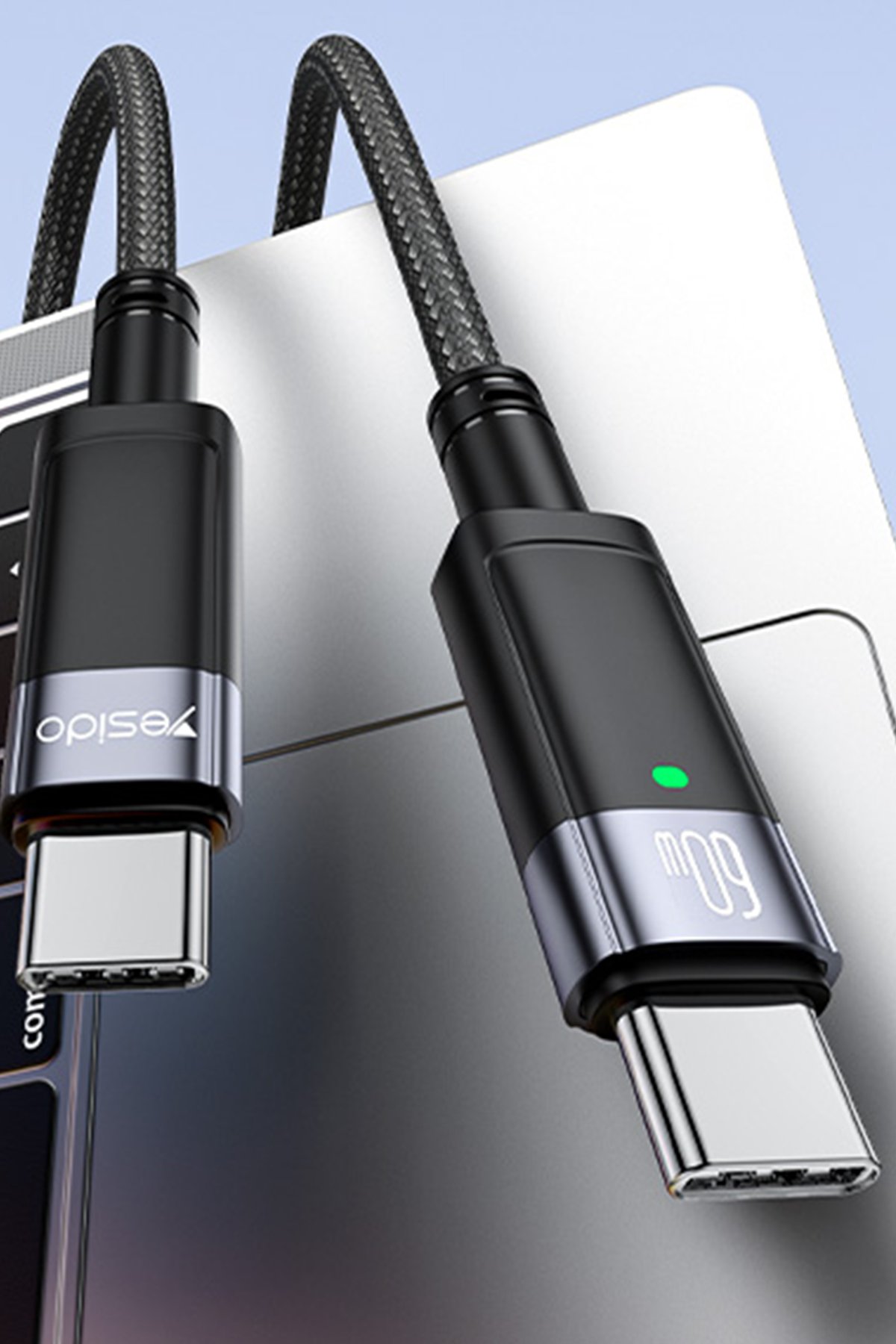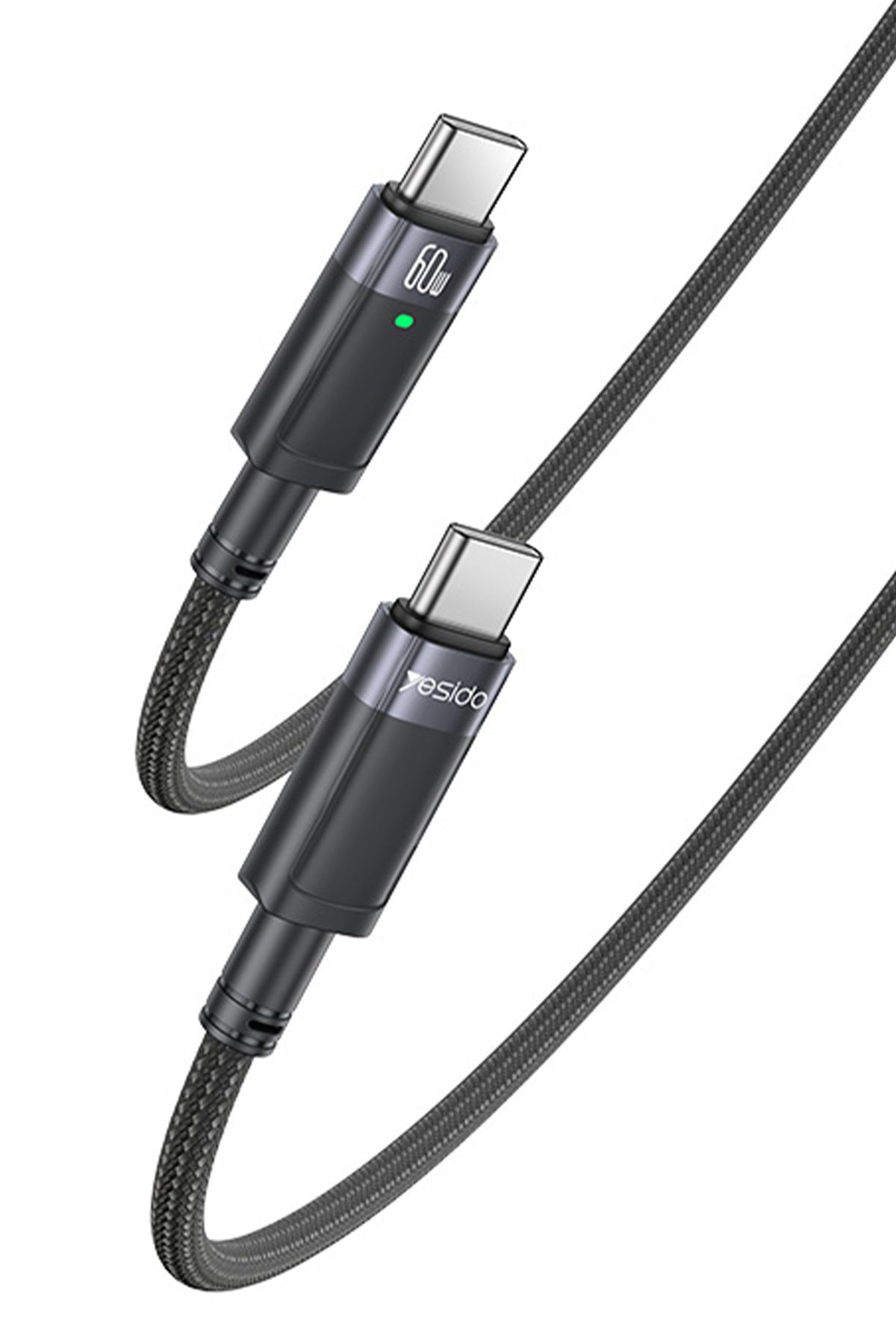 Yesido CA160 1.2M 60W Type-C to Type-C Otomatik Şarj Kesme Özellikli PD Hızlı Şarj Kablosu