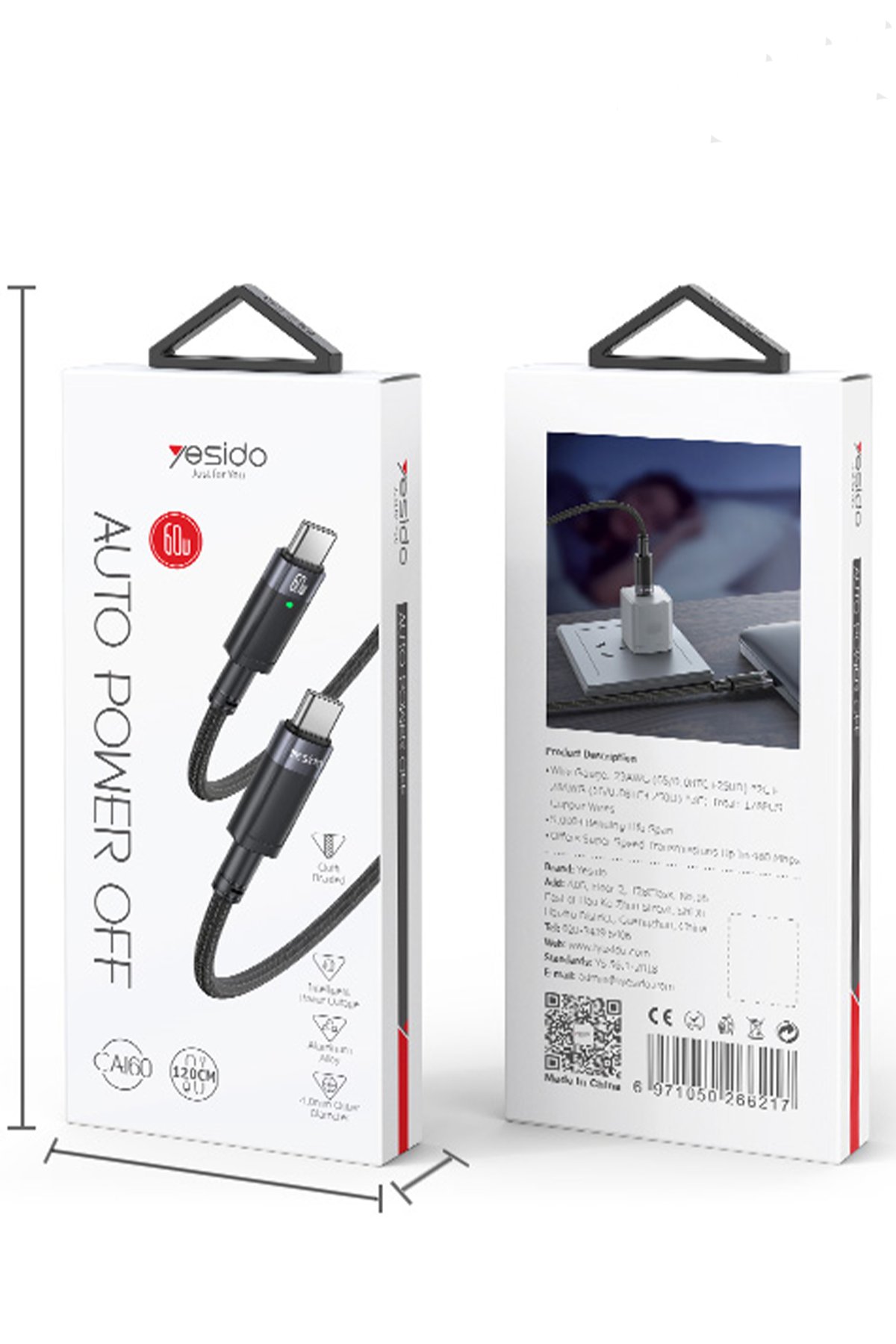 Yesido CA160, 60W hızlı şarj, akıllı otomatik şarj kesme ve dayanıklı yapısı ile cihazlarınız için güvenilir bir şarj ve veri aktarım çözümü sunar. Hem evde hem de seyahatte kullanım için ideal bir seçimdir.