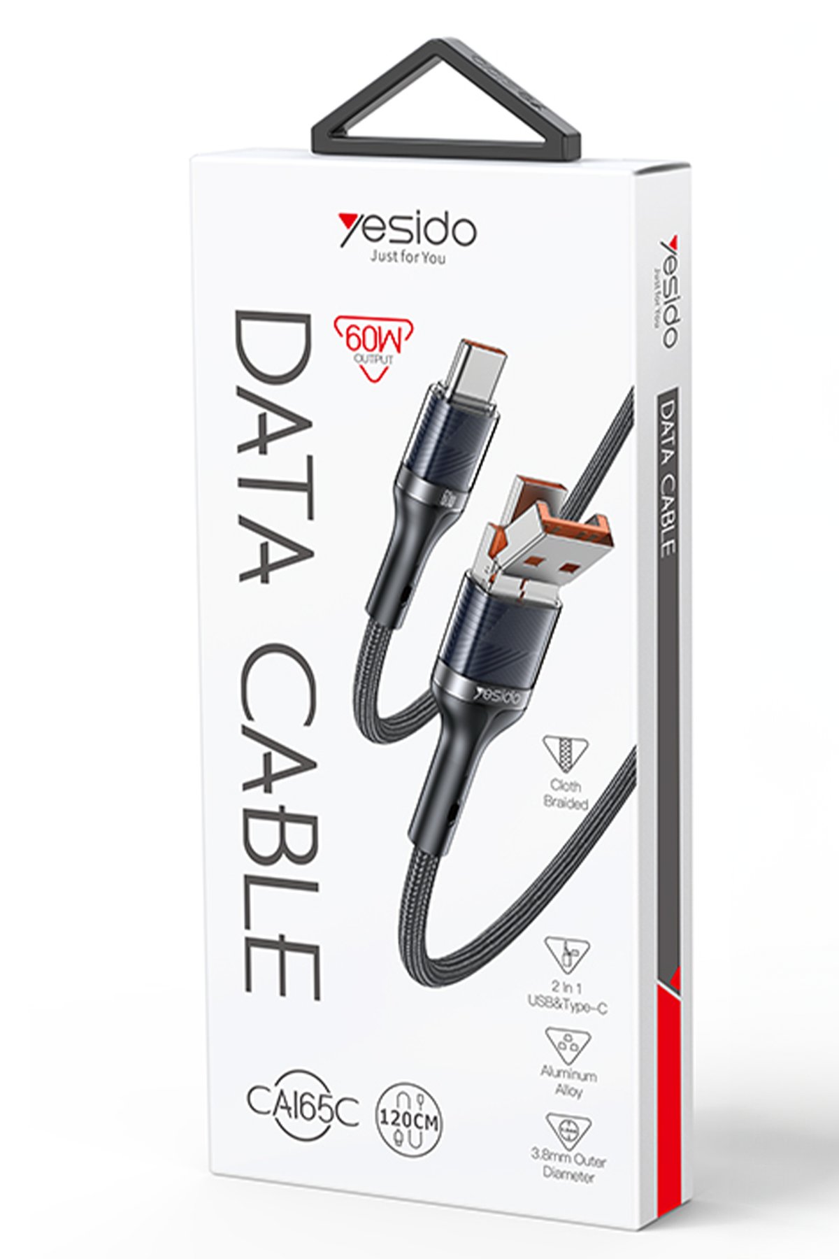 Yesido CA165C 1.2M 2in1 Bir Ucu USB ve Type-C to Type-C PD Hızlı Şarj Kablosu