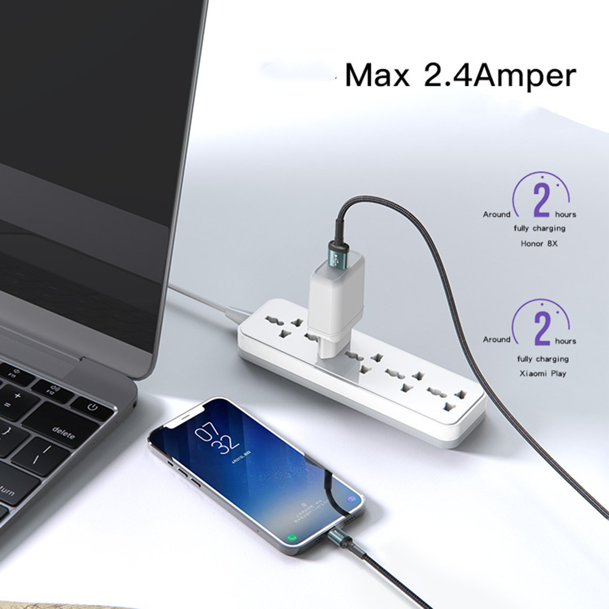 Yesido CA75 2M 2.4A Hasırlı Usb to Lightning Hızlı Şarj Kablosu