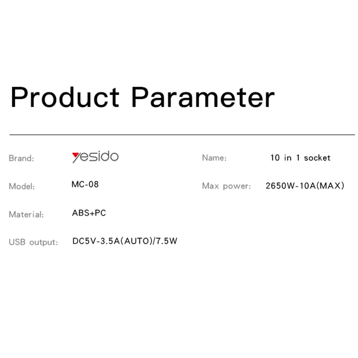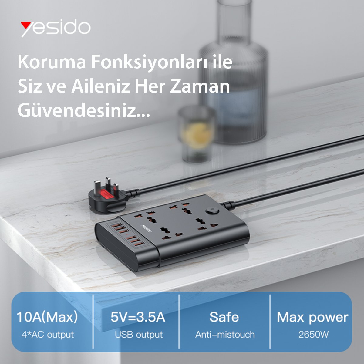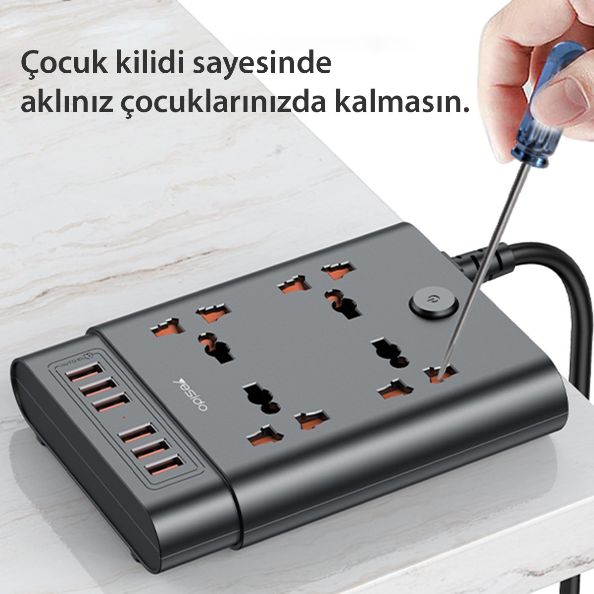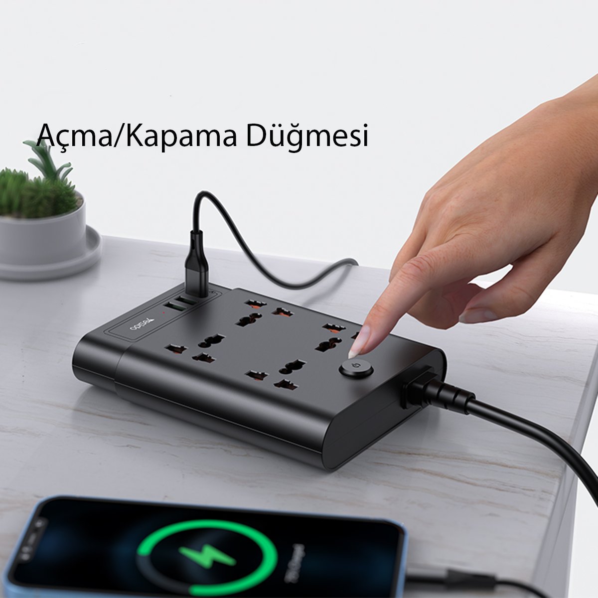 Yesido MC08 10in1 6 Adet Usb ve 4 Adet Priz Dönüştürücü 1.8M