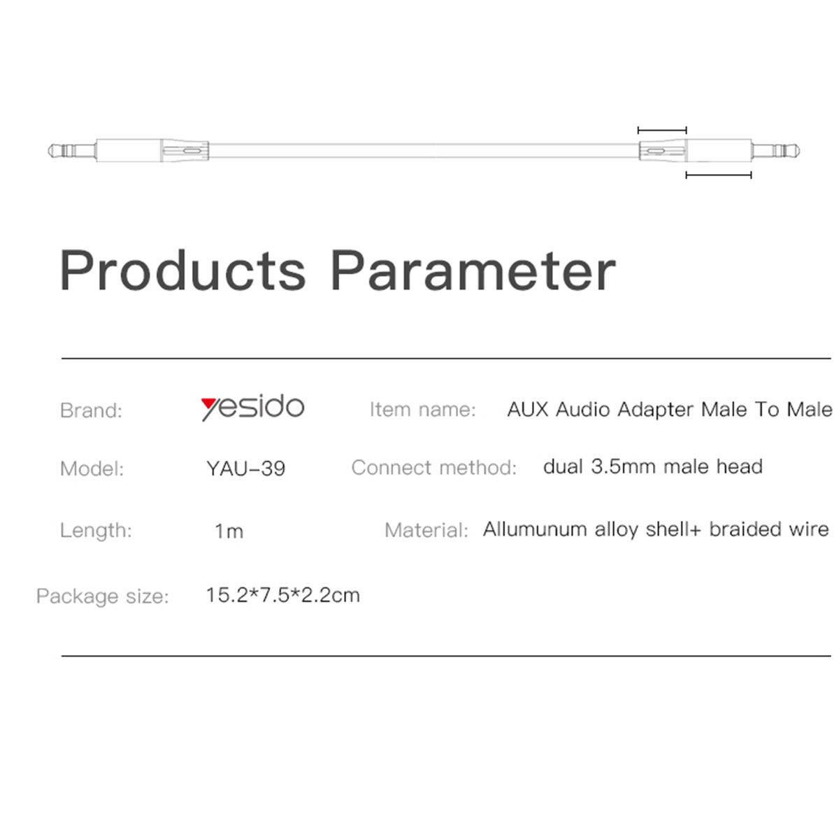 Yesido YAU39 Aux Kablo, güvenilir bir ses aktarımı ve dayanıklılık arayanlar için mükemmel bir seçimdir. Her an, her yerde kaliteli müziğin tadını çıkarın!