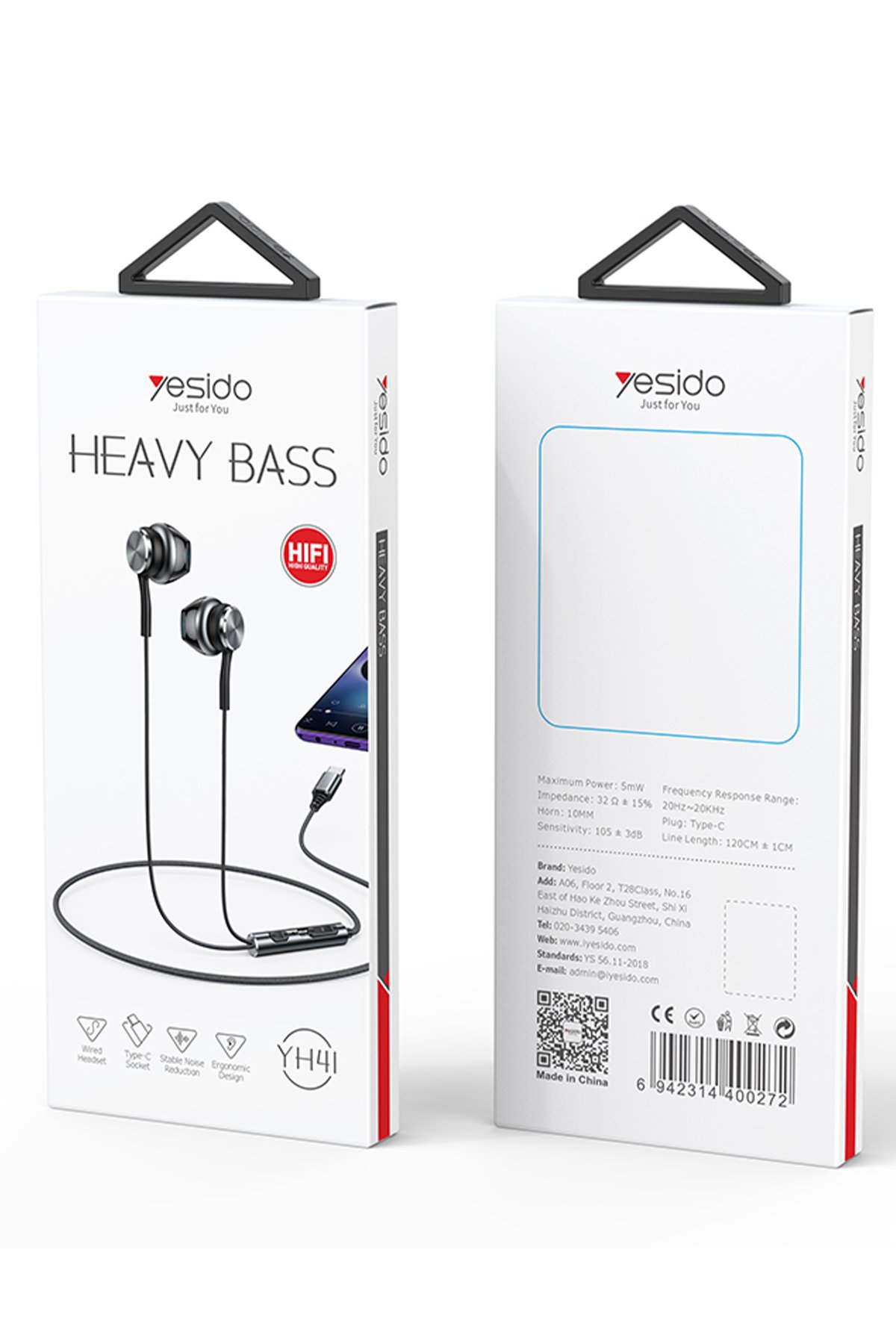 Yesido YH41 1.2M Yüksek Baslı Type-C Kablolu Kulaklık - Siyah
