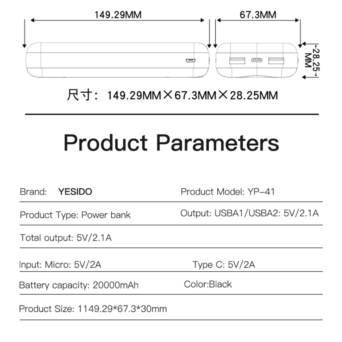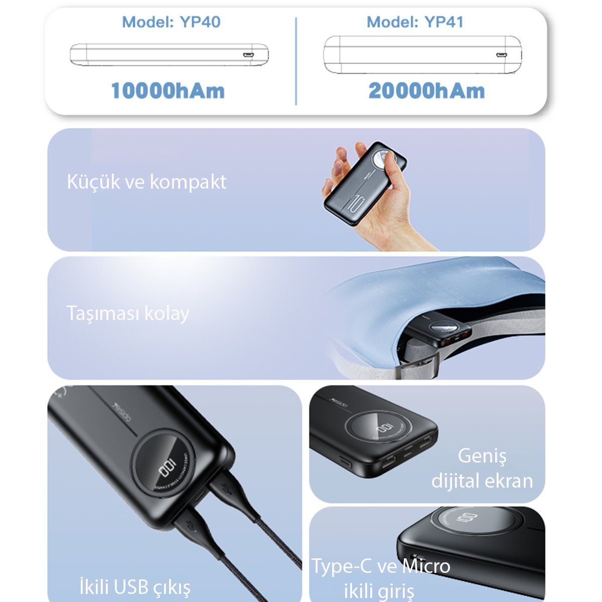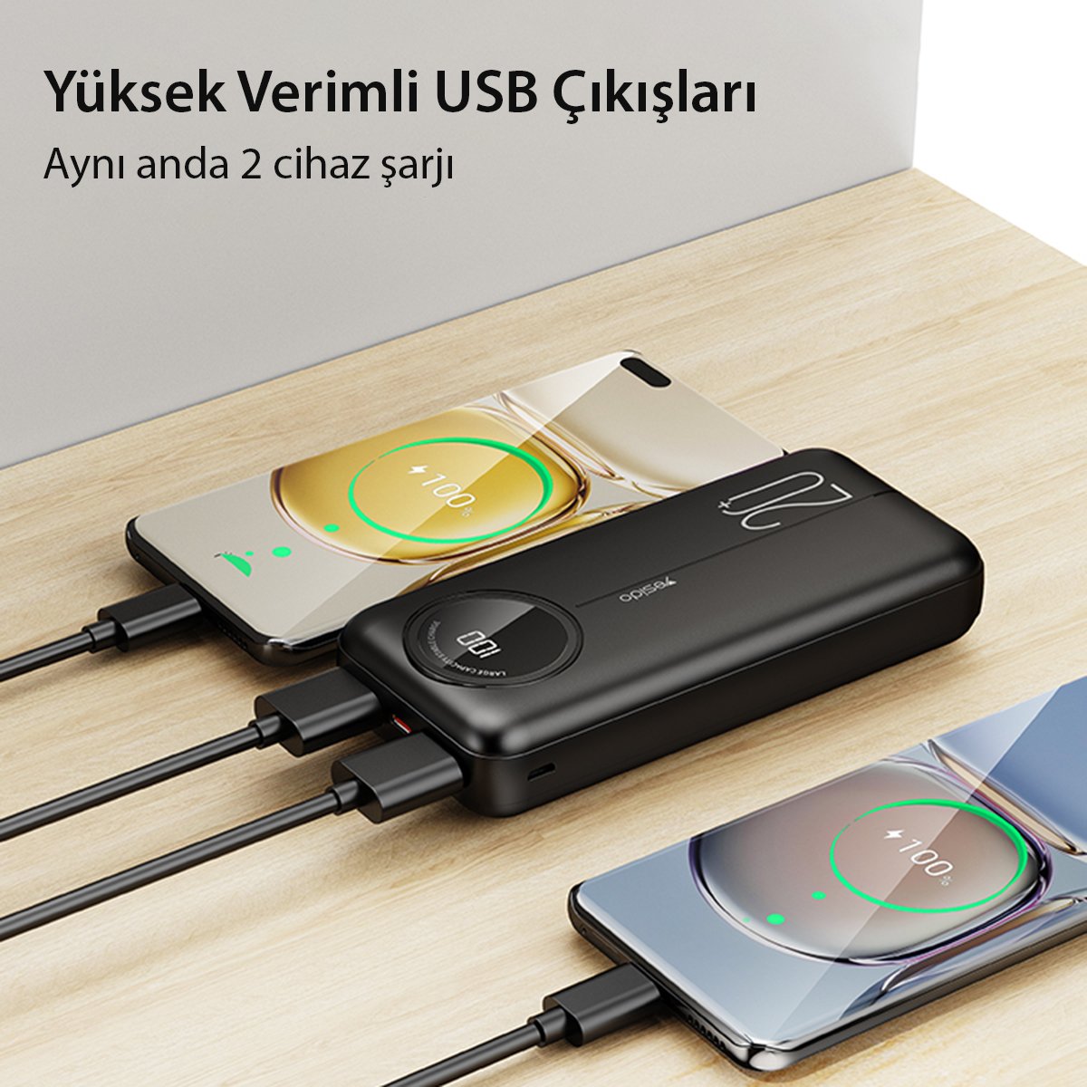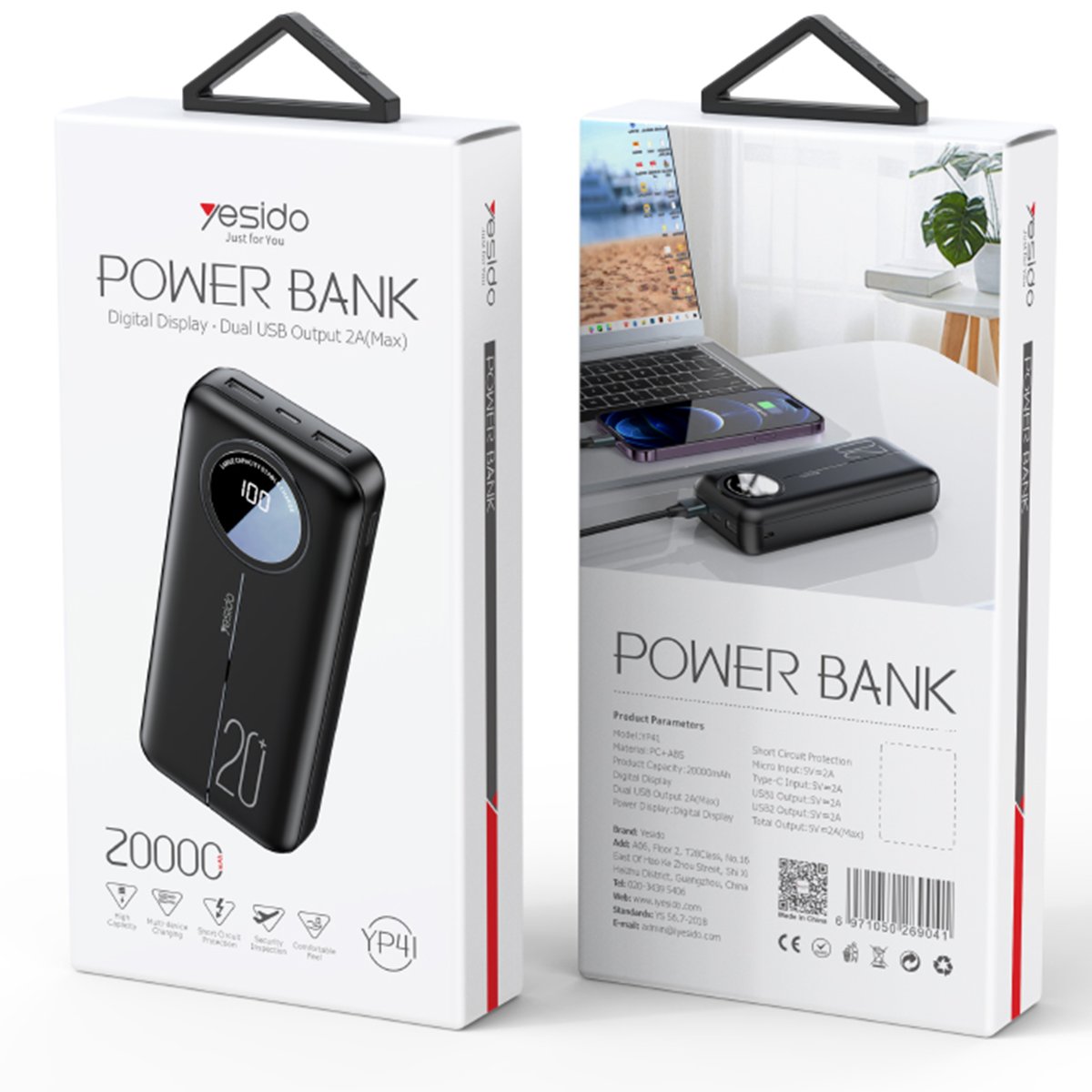 Yesido YP41 20.000 mAh Dijital Göstergeli USB3.0 PD Hızlı Şarj Powerbank