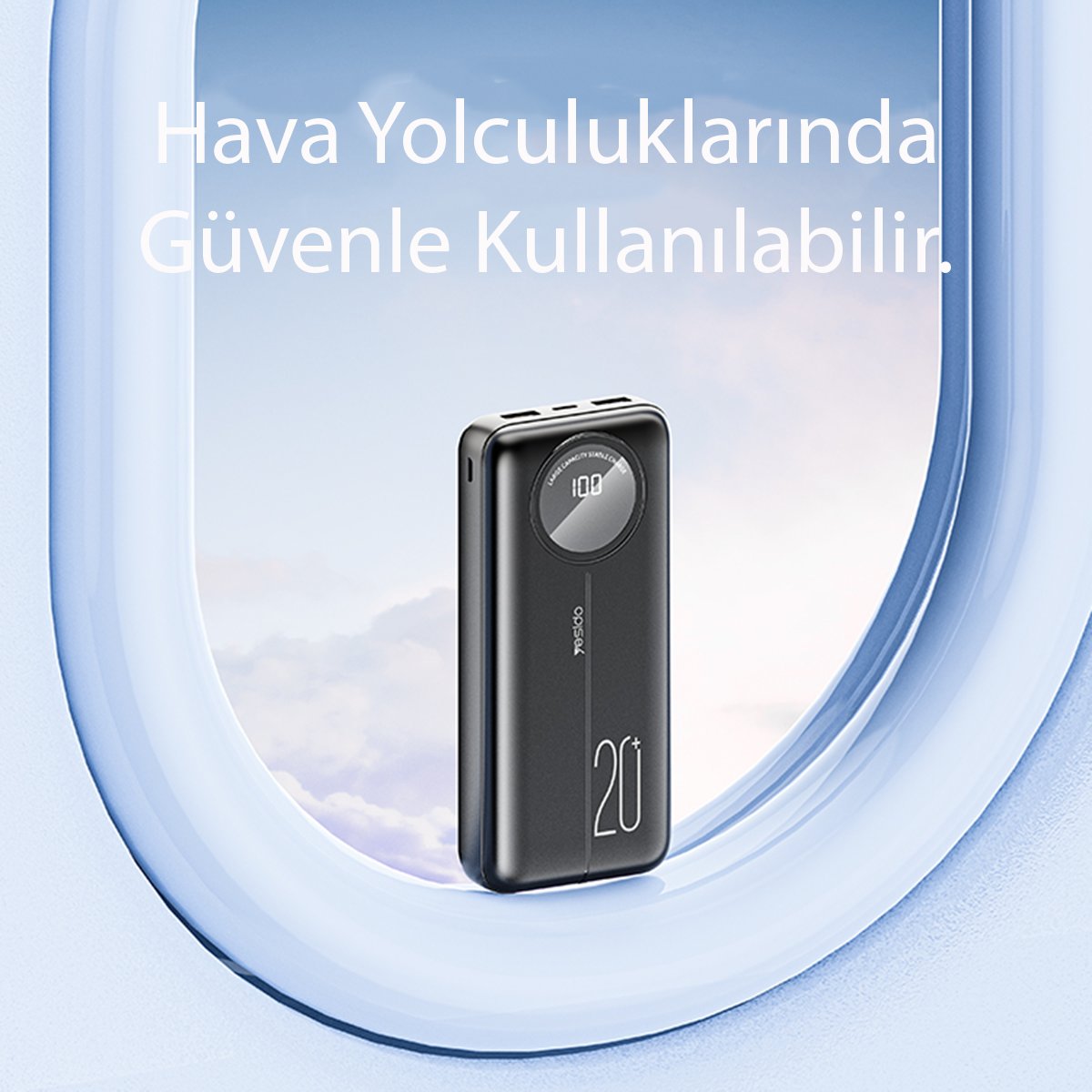 Cihazın kapasitesi 20000mAh'dir. Cihazın LED ışıklı dijital göstergesi, cihazın şarj seviyesini ve ne kadar güç kaldığını gösterir.