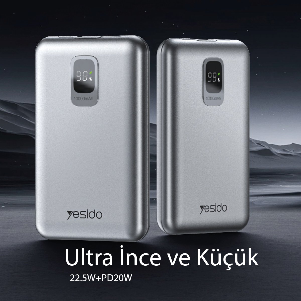 Yesido YP46 10.000 mAh 22.5W Dijital Göstergeli USB3.0 PD Hızlı Şarj Powerbank
